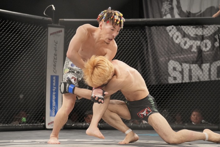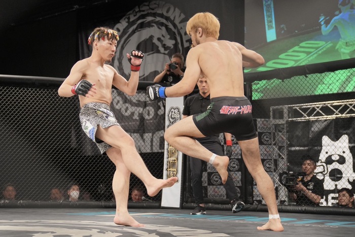 1R、両者オーソドックス。カーフを蹴る堀内にライダーがタックル。ケージでこらえた堀内がギロチンを狙うと、自ら下になり外したライダー。堀内離れてスタンドに。またタックルに来たライダー。ケージ際で入れ替えて上を取る堀内だが、ライダーが立ち上がると離れる。堀内のカーフキック。ジャブで出るライダーに堀内がカーフキック。