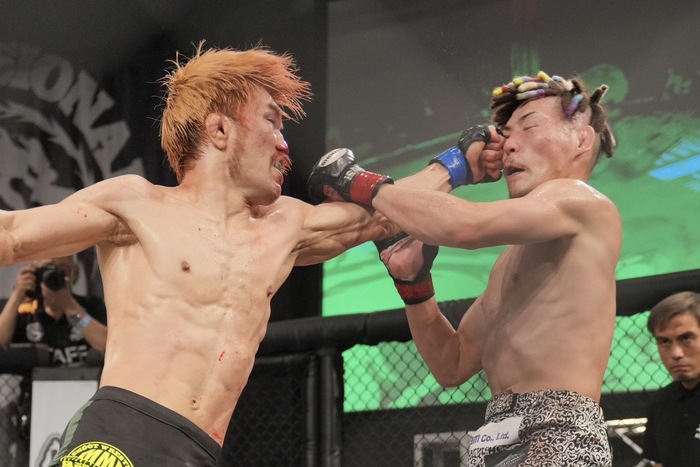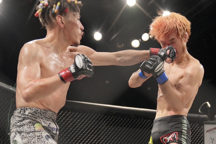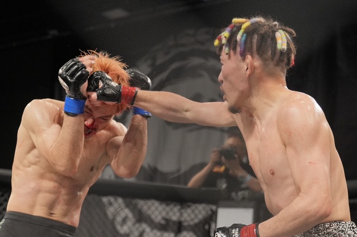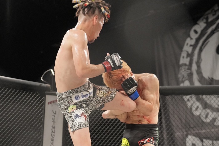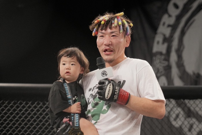 30-27の3-0で堀内が判定勝ち。2022年10月のLFA以来、2年7カ月ぶりの白星を掴んだ。ケージのなかで子どもを抱えて「4月に2人目が生まれて、身内にはもうこれが最後になるかもしれないと伝えていたんですが、やっぱ勝つと最高で、まだやりたくて。もう一回嫁の機嫌を伺いながら、また頑張りたいと思います」と語った。