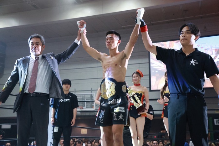 そして「最後に一つ言いたいのは、寺田選手、相手決まっているか分からないけれど、日本人で倒せるのは俺だけだと思うのでいい返事待っています」と、7月13日(日)福岡・マリンメッセ福岡『K-1 DONTAKU』に出場が決まったK-1 WORLD GPフェザー級王者・寺田匠(team VASILEUS)へ挑戦状を叩きつけた。