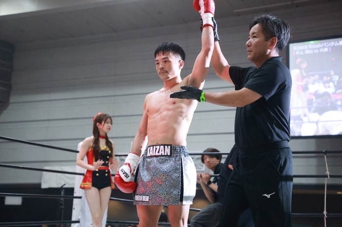 2Rも前に出て行くのは井上。大輝は前蹴りで距離をとろうとするが、井上に左ストレートに被せるような右ストレートを直撃されてダウン。大輝の左ストレートに右を被せる井上は、右ストレートで大輝を吹っ飛ばして2度目のダウンを追加。右ストレートで前に出る井上に大輝は左ストレートのカウンターを狙うが、最後は井上が右フックでKOした。