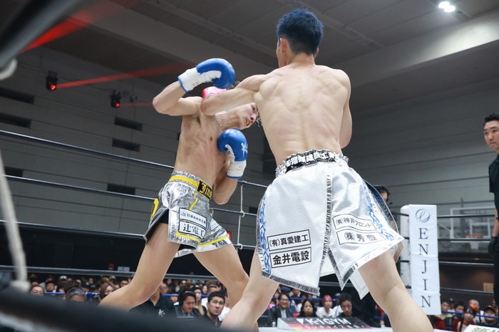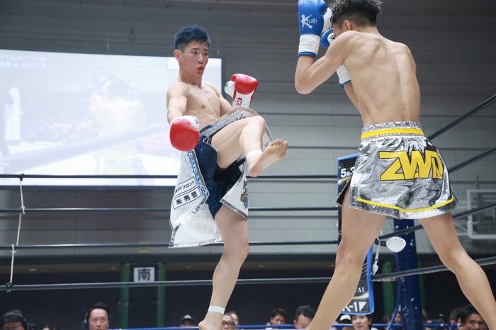 ダウン寸前になる吉川だったが、左フックで逆襲。気持ちの強さを見せる。ラッシュで疲れたか、手が出ない安尾に吉川が左ボディ。安尾はジャブ。再び安尾が左アッパーから前へ出るが、吉川は打たれても打ち返す。