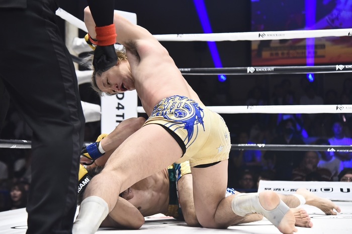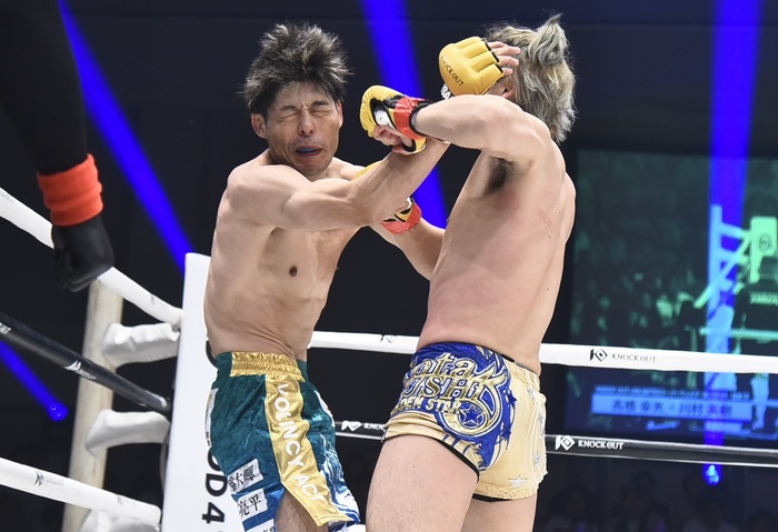 高橋の右前蹴りからの右フックに転倒した川村に、高橋がすかさずヒジと鉄槌の連打。川村は防戦一方となり、レフェリーがストップ。高橋のKO勝ちとなった。
