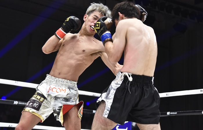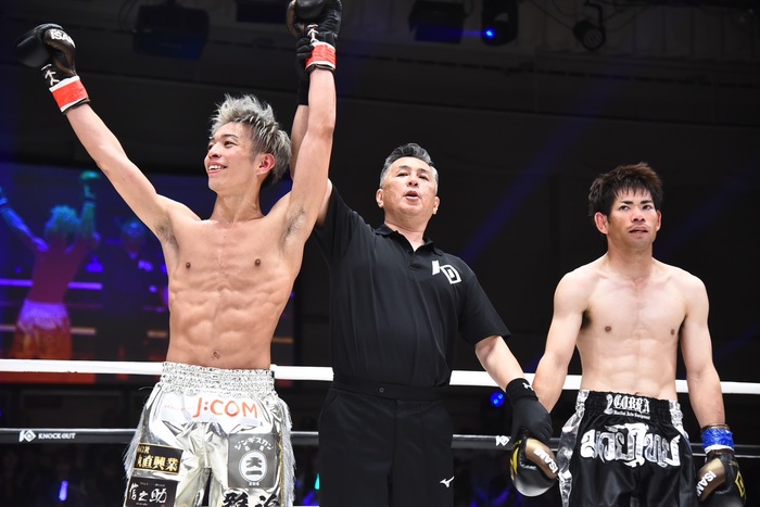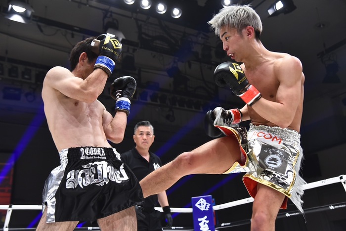1Rから森本が前に出てパンチを繰り出していくが、雅治がワンツーで迎え撃つ。2Rにはジャブ、ワンツー、右ローと回り込みながら上手く当てて行く雅治。飛びヒザ、パンチのまとめ打ちからヒザにつなげる雅治が優勢に。