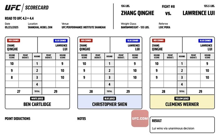 #RTU4 Official Result: Lawrence Lui (29-28, 29-28, 29-27) defeats Zhang Quinghe via Unanimous Decision.