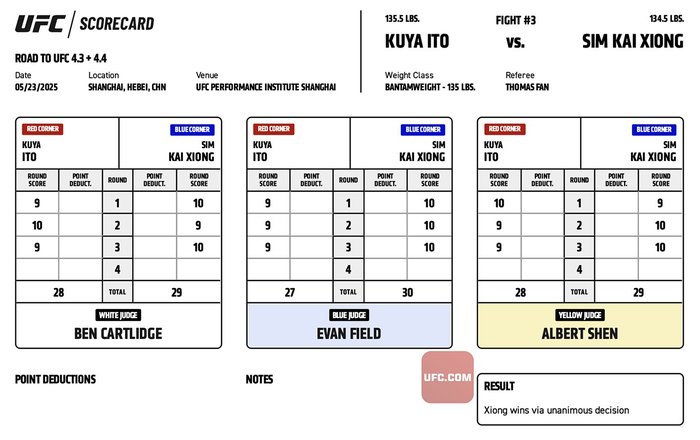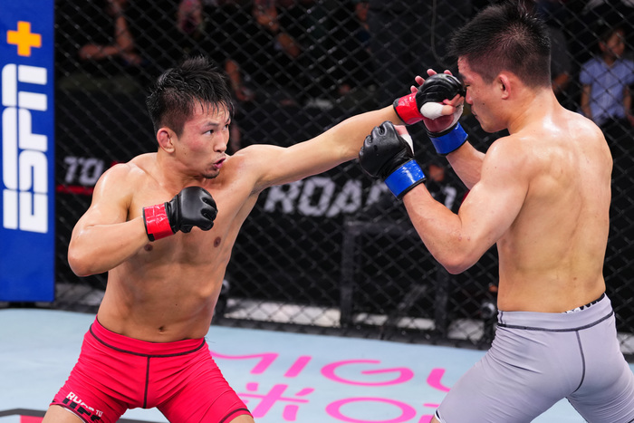 対するシンガポールのシン・カイ・シオンは、現UFCのイ・チャンホに2022年のBRAVE CFで判定勝ち。唯一の黒星をつけた。2023年のROAD TO UFCフライ級ワンマッチでピーター・ダナソーと対戦し、跳びヒザで1R KO負け。今回は階級を上げての出場となる。