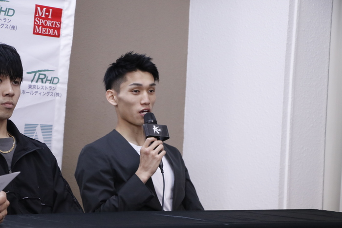 「毎日、相手を想定して練習を一生懸命やってきたのはもちろんなんですけれど、今回初めて煽りVの撮影があって。自分の出身は茨城で本当に田舎なんですけれど、わざわざ来てくれて。こんな田舎でカッコよく出来るのかなと思っていたんですけれど、その完成品を見るっていうのをモチベに頑張っていました」という齊藤は、「自分は試合できるかまだ決まってないですけれど、今は試合を凄いしたい気持ちなので、もし試合が出来るってなればぶっ倒すつもりでガンガン1Rから行きます」と鬼山が出てきてくれることを期待していた。