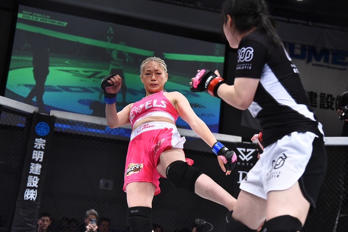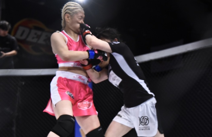 大井は、4月6日の大阪大会で当日計量49kg契約でセアリ(KING GYM KOBE)との熱戦を制して判定勝ち。44kgで王者を目指すという。渡辺は柔術&キックベース。アマチュア修斗関西選手権、アマチュアGLADIATOR等に出場。GLADIATORでは、横三角での一本勝ちを極めている。