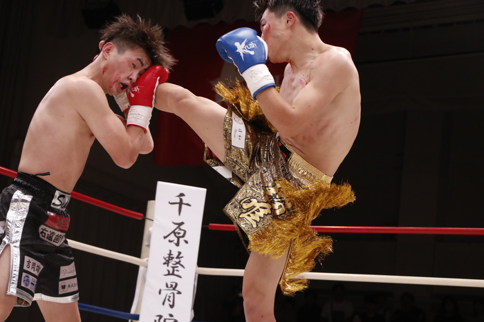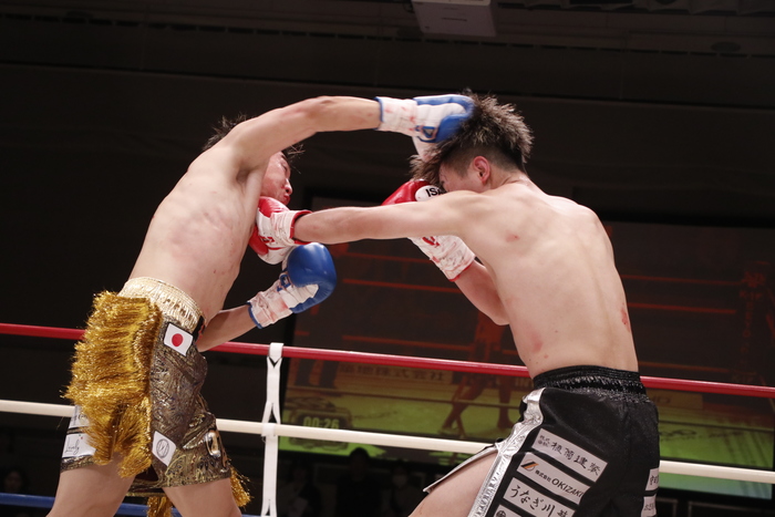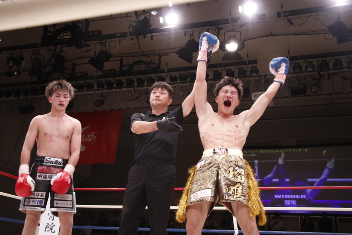 3R、パンチとヒザでアグレッシブに前へ出て攻める瑠唯に、上田はカウンターの右ストレート、左フック、左ボディ。的確に当てる上田だがダウンのマイナスを奪い返すほどの攻撃がなく、判定3-0で瑠唯が勝利した。