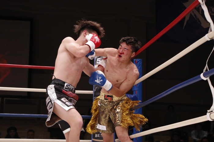 2R、上田が右ストレート、左フック、左ボディ、ヒザで逆襲。瑠唯をコーナーへ詰めて攻撃をまとめる。中盤以降は鼻血を出した瑠唯が反撃に転じ、右フックで前へ出ていき打ち合いに。