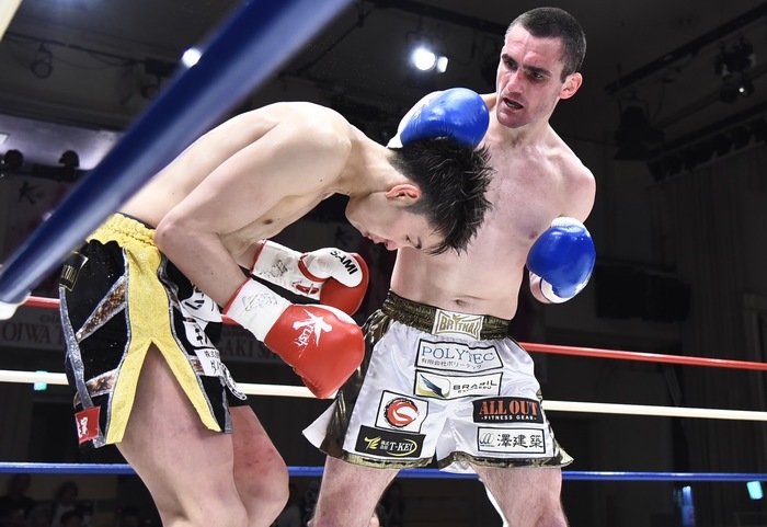 3R、右カーフ、右ミドルを蹴る塚本にリターンの右ローを蹴るトファネリ。塚本が蹴った右カーフにトファネリが左ローを返すと塚本が棒立ちになり、そこへトファネリがダメ押しの左ロー。ここでレフェリーがストップした。