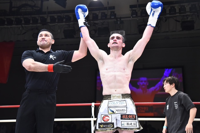 トファネリはマイクを持つと「塚本選手めちゃ強い。今度の試合は勝ってください。KOで勝てて嬉しいです。押忍」と流ちょうな日本語でマイクアピールした。