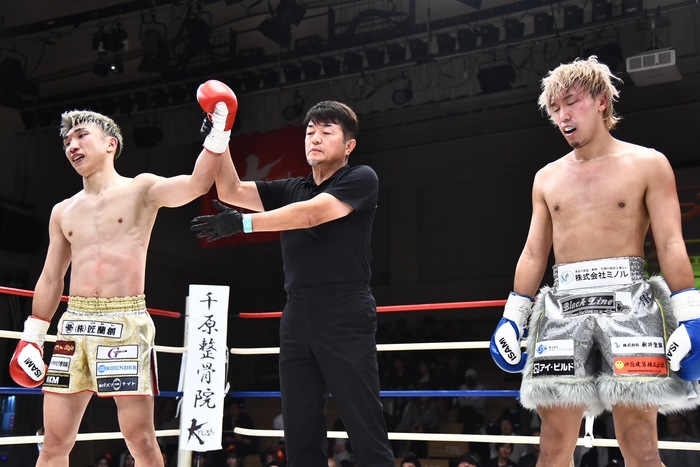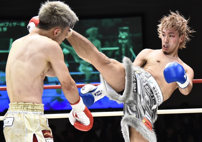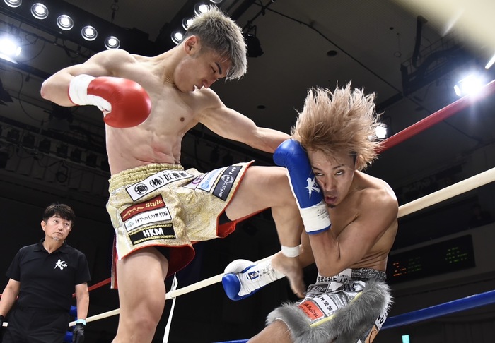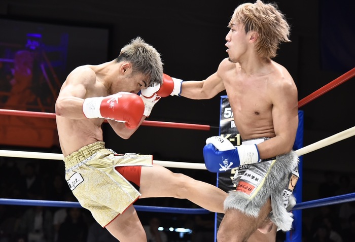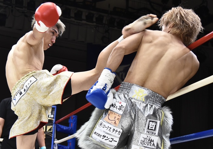 1R、銀次は左インローと右カーフ、寺島も右カーフを蹴り返して左フックを振る。寺島の左三日月2連発に銀次は左ハイ、寺島はさらに三日月を突き刺す。右―不を蹴った銀次は右フックからの左ボディを命中させ、左ボディで攻めていく。寺島が押すように投げ倒し、銀次が後頭部を打ったため試合は中断。銀次は右カーフ、寺島は左三日月を蹴り合う。