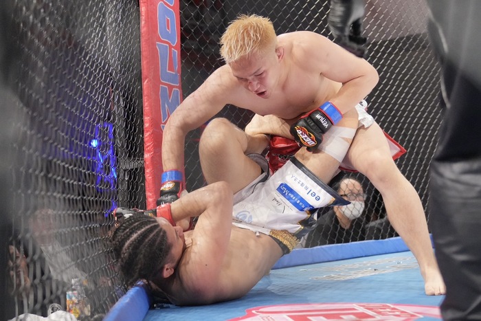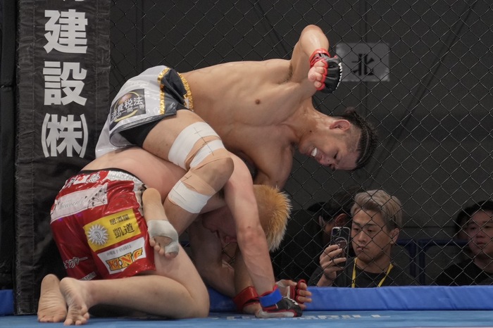 しかしケンシロウが小手から足を跳ね上げスイープで上になり、両者立ち上がり。シングルレッグからバック奪いに行くケンシロウに川島が胸を合わせて上に! 最後は中腰からパウンド連打でゴング。