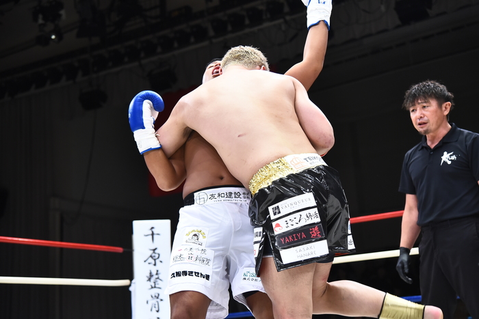 そこでもっと早くレフェリーにブレイクして欲しかったとの気持ちはあったか、と問われると「あったんですけれど、自分で展開を作らなきゃいけないっていうのもあったので。そこで置きに行きすぎたというか、僕も“やめ”待ちになっていたというか。空手だと『離れて』ってなるんですけれど、それを待っちゃったっていうのは向こうも空手の選手で僕も空手の歴が長かったので、興行としてはどうなのかなと思いました」と、そこからの展開を作るよりもレフェリーのブレイク待ちになってしまっていたと振り返る。