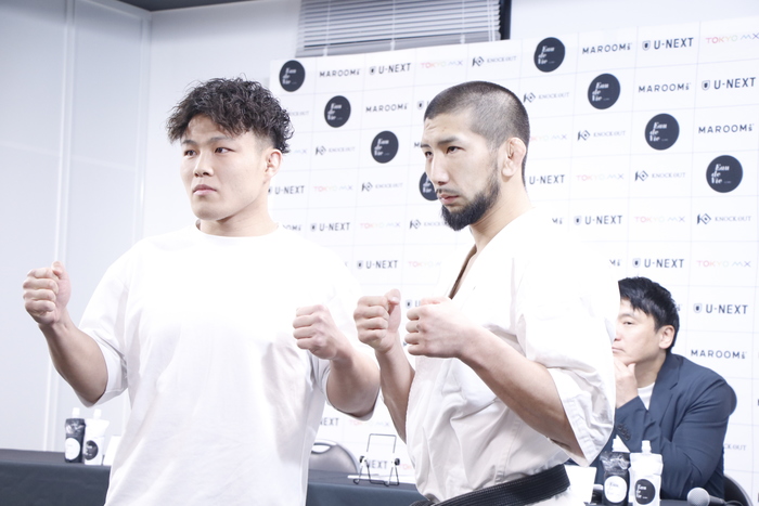 すでに発表されていた、KNOCK OUT-UNLIMITED -67.0kg契約3分3Rで対戦する高塩竜司(KIBAマーシャルアーツクラブ) と木下カラテ(和術慧舟會HEARTS)が出席。