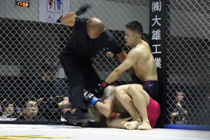 対するは、千葉・津田沼道場の古参・椎名渉。40歳で迎えたプロ初戦の『POUNDOUT 1』で見事な1R KO勝利を挙げた。キャリア20年。総合格闘技一本に絞り、ひたむきに培ってきた“津田沼道場スタイル”は、まさに無駄のない近距離戦の完成形といえる。リズムを乱さず前進し、テイクダウンからのパウンドを打ち込む姿勢には、年齢を超えた凄みがにじむ。
