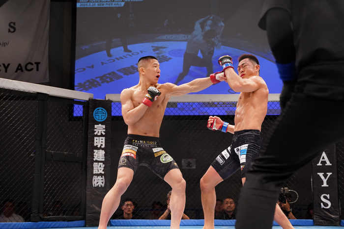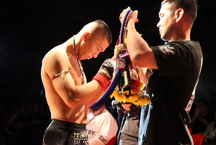 そうなったことによって、インターバルに入った時に『ちゃんと距離守ろう。思ったより当たるけど、しっかり自分が作ってきた距離設定に戻そう』となって。そこでインローとかが当たるなとか、蹴りの距離だったら向こうのパンチは当たらないけど、自分の蹴りは全部当たるなって、距離が分かってきたんで。あのサカボの1回、相手がめっちゃ効いたシーンにも繋がったし、最後のフィニッシュにも繋がったかなって感じですね。だから試合の中で修正したっていう感じですね」