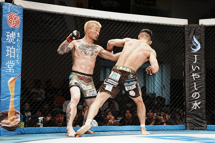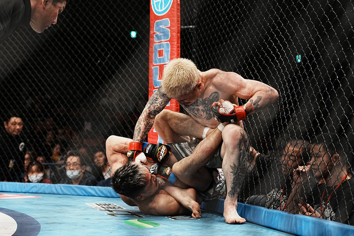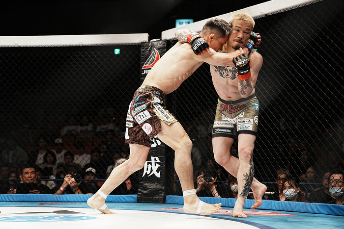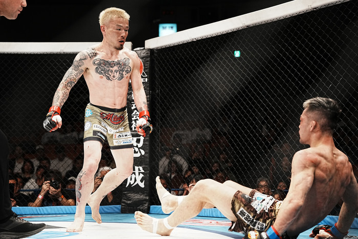 「アッパーが効いたんで、当たったのも分かったし、力も入ってへんかったから。俺も夢中になっちゃうから、四点ヒザ行きかける自分と、サッカーボールかみたいなところを悩んじゃうとことかがあって、そういうところももっとうまいこと思考と行動がリンクするように訓練が必要やなと思いましたね」