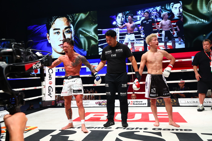 「梅井選手のバックボーンというか、いつから格闘技をやっているとか何も知らなかったので、“左フックを当てて倒すしかない”と思っていた所で当てて倒したって感じですね」