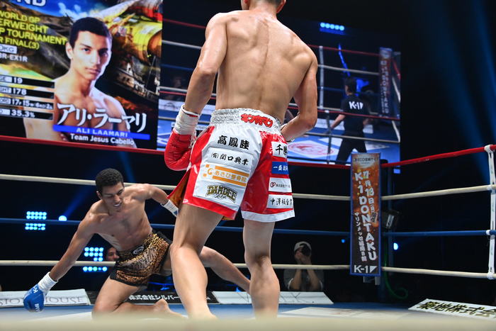 3R、左右フックで前に出るラーマリに中島は左フック。中島は左カーフ、ラーマリは左右ミドルとローを蹴る。ラーマリが不用意に右飛びヒザ蹴りのモーションを見せたところで中島が右フックを合わせてダウンを奪う。立ち上がったラーマリはワンツーで前へ出ていくがすぐにゴング。