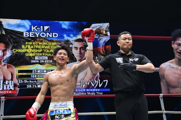 本戦の判定はドローで延長戦へ突入。横山は左ボディストレート、ジャンプしての右ストレートとアグレッシブに攻める。そして左三日月。ベクレフは前蹴り、左ミドル。打ち合いに持ち込んだ横山がベクレフの右フックに左ボディのカウンターでダウンを奪い、ベクレフは立ち上がれず。横山がKO勝ちで1回戦を突破した。