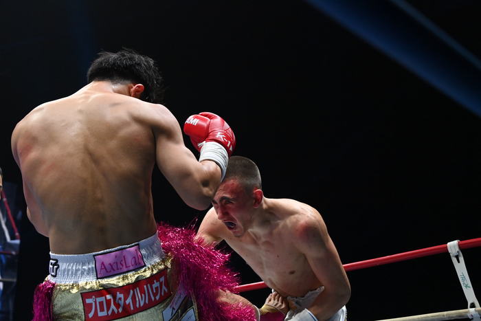 1R、サウスポーの横山は序盤から左ストレートや左フックを振り抜く。ベクレフは前蹴りとワンツー、右ロー。横山が左ボディを叩きつける。ベクレフの右ローに左フックを振り抜く横山だが、空振りが目立つ。ベクレフの左右フックも横山がかわす。両者とも相手のパンチを空振りさせていく。