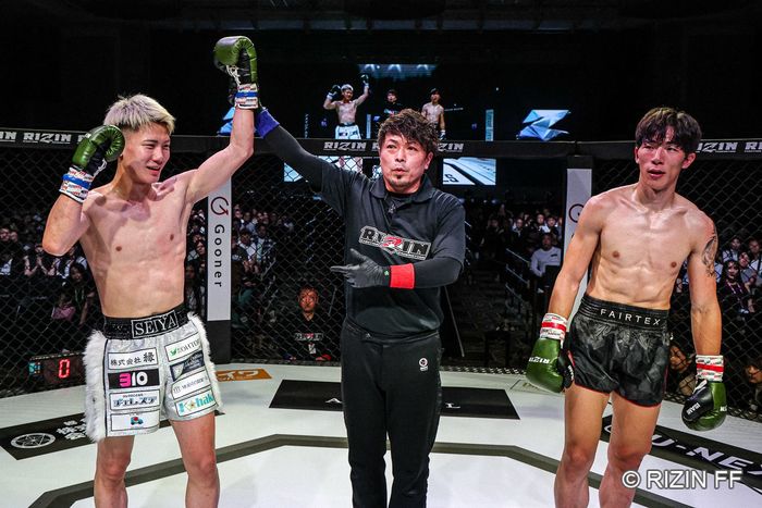 井上「熊本から来ました。この日を楽しみに待っていました。格闘技を始めた時からRIZINで試合をするのが僕の夢でした。こんな無名の自分にRIZINという大きな舞台で戦えるチャンスをいただきありがとうございます。最高の試合をするので井上聖矢に注目してください。そして、これから格闘技界で注目してもらえるように頑張ります。相手はとても打ち合ってくれるファイターだと思うので、自分も打ち合いには自信あるので派手な打ち合いをしてぶっ倒そうと思います」