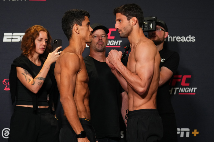 対するフィーリョは、2023年3月のUFCデビュー戦で無敗のムハンマド・モカエフと対戦。ヒザ十字を極めかけるなど攻め込むも最後にリアネイキドチョークで敗れている。その後、2試合続けて1R一本勝ち。2024年3月にオデ・オズボーンに1R リアネイキドチョークを極めている。また、2024年12月には、8月に平良達郎と対戦する3位のアミル・アルバジとグラップリングマッチで対戦し判定勝ち。32歳。