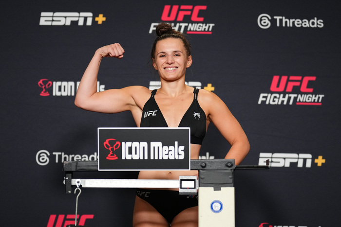 対するバーバーは、無敗でUFCデビューし、現在UFC6連勝中。強いフィジカルと、パンチのコンビネーションが武器。元タイトル挑戦者のジェシカ・アイに判定勝ち後、アンドレア・リーにスプリット判定勝ち。そして2023年6月にはアマンダ・ヒバスとの壮絶な打撃戦を2R TKOで制した。2024年3月の前戦では、ケイトリン・ サーミナラに判定勝ちしている。27歳。