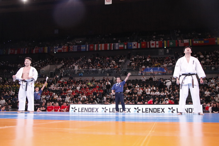 「ありがとうございます。いつもいいところまでいっていたんですが、なかなか優勝できなくて。いや、たまんないです。ありがとうございます。(上段ヒザ蹴りは)タイミングが合えば狙っていたので嬉しいですね。信じられないです。優勝を目標にしていましたけれど、どの島にいても厳しいので出来る自信はなかったです。自分は社会人で、自分一人じゃ何も出来なくて家族や職場の皆さんのおかげで優勝出来ました」