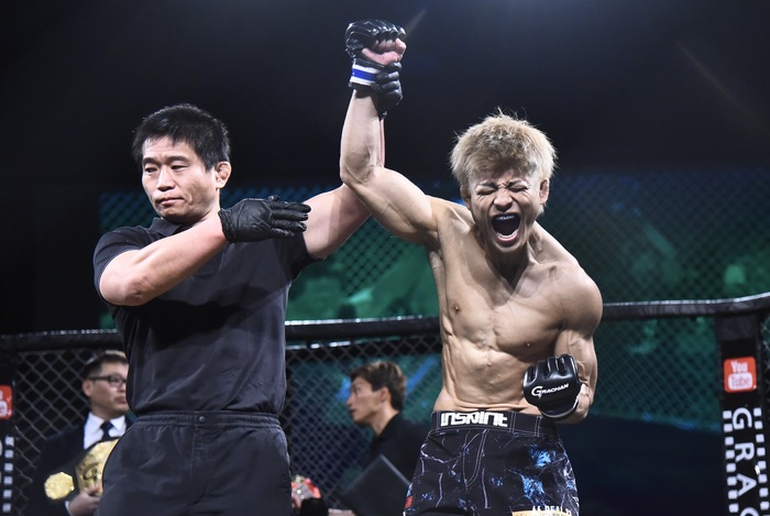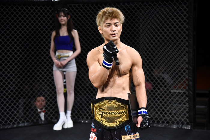 今日は応援してくれるみんな、サポートしれくれる人たちのために獲ったベルトです。最高です。あと、ことはまだどうなるか分からないですけど、しっかりGRACHANで勝って、必ずUFCに行って、強い海外の選手と戦って勝ち抜いていきます。そしてGRACHANの強さを証明していきますので、岩﨑(ヒロユキ)代表、これからもよろしくお願いします」と語った。