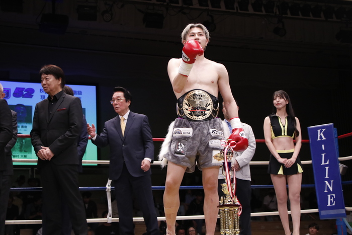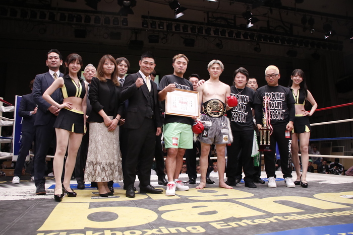 ベルトを巻いた奥平は「RISEから来ました。毎回試合前は怪我しちゃって。前回の試合も2週間前から肺炎になって、今回も足首怪我して挑んだ試合でした。でもみんなが大声援を送ってくれたおかげで自分の力になりました。ビッグバンのベルトを獲ってまたRISEを盛り上げられたらと思います。ビッグバンももちろん盛り上げます。RISEを見に来たことない人もいると思うんですけれど、僕が出るときに見に来てください」と語った。