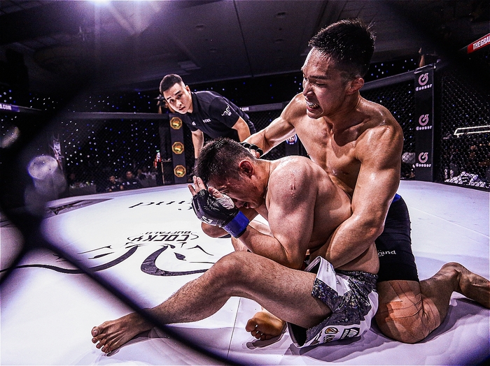 シン・ジェヨンは倉本をダブルレッグテイクダウン。バッククリンチから足払いで崩して両足をかけてバックマウントへ。正対する倉本の腰を抱き、寝かせて亀になる倉本のサイドバックからパウンド連打でレフェリーが間に入った。