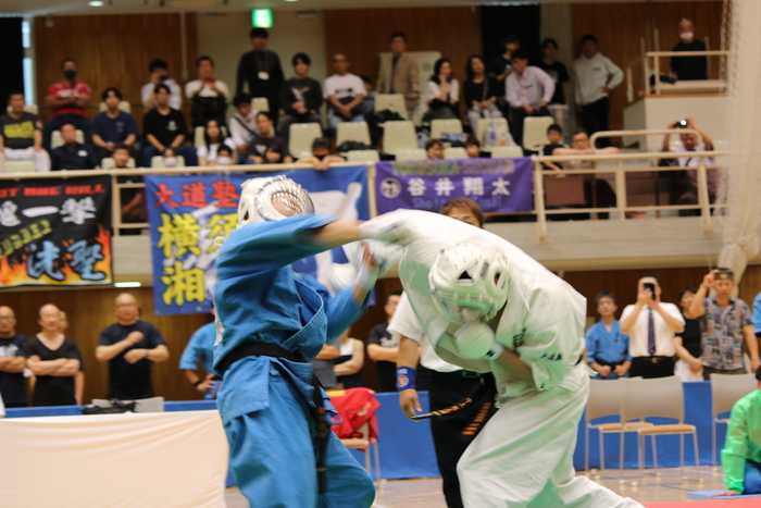 迎え撃つ中上悠太朗(大道塾総本部)は、昨年のこの大会をケガ(肩の脱臼)のため欠場していたが、半年前に競技復帰するや、全日本無差別選手権を21歳にして制し、一躍日本空道界の新たな顔となった選手。