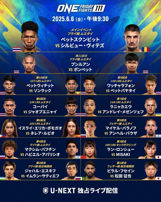 2025年6月6日(金)タイ・ルンピニースタジアム『ONE Friday Fights 111』(U-NEXT配信)に、今週も日本人選手2名が出場する。