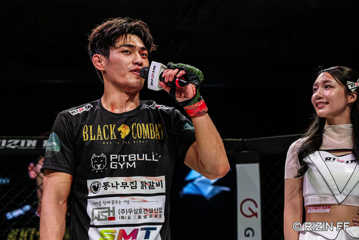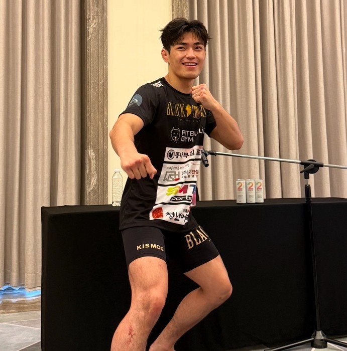 「グラップリングはさすがにベテランでした。ただやってみて思ったのは、うちのジム( Chuncheon Team Mad)のコーチの方がもっと厳しいというか、練習の方がキツかったです。打撃については、僕の打撃の練習パートナーが “Sirasoni”(バン・ソンヒョク)で、今Black Combatのフェザー級チャンピオンなんですよ。だから打撃の面でも全然問題なく、むしろかなり余裕を持って対応できたのでKOまで持っていけたと思います」