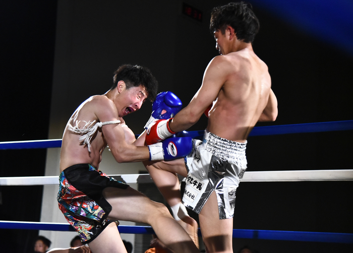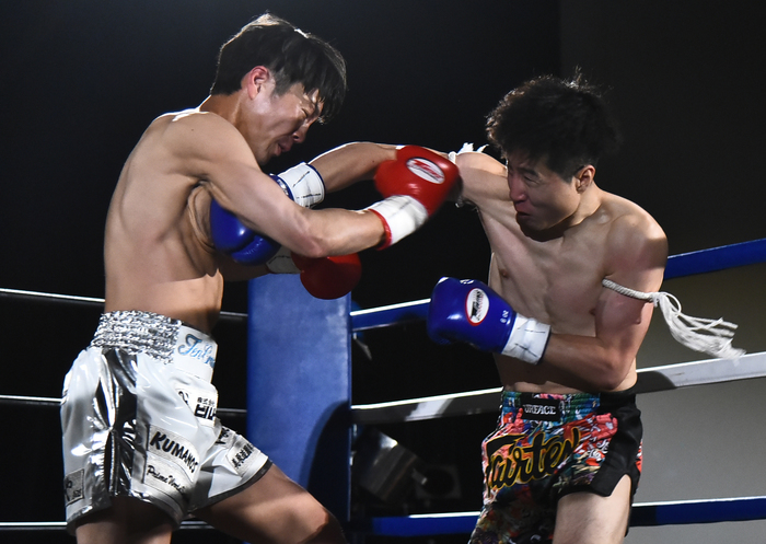 1R、前に出る竹内は左ボディ、右ハイを見せ、大稚は細かいパンチ連打を返す展開。2R、パンチの手数で上回る大稚に、竹内は左ボディ、テンカオ、右ハイと多彩な攻めで一歩も退かない。終盤には打ち合いも見せた。