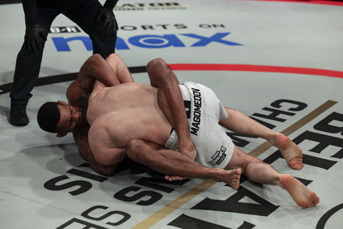 ──その今回の試合は、MMAとしては、2024年5月のマゴメド・マゴメドフとのBellator世界バンタム級王座戦以来の試合となります。あの試合は、あなたにとって最も厳しい試合だったのではないでしょうか。2Rの跳びついてのギロチン、そして3R目にはマゴメドフのシングルレッグにギロチンでボディトライアングルに相手を入れて絞めました。万全のようでしたが極め切れなかった。あの前戦から得たことは?