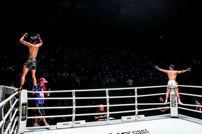 するとONEストロー級ムエタイ世界王者プラジャンチャイがベルトを持ってリングイン。アリーフは「プラジャンチャイが強いのは分かっているが早く対戦したい。チャンスをつかむためによりハードにトレーニングしたい」と対戦をアピールすると、プラジャンチャイは「今日はおめでとう。いつか戦いましょう」と答えた。リング上ではフェイスオフも行われ、この2人のタイトルマッチになることは間違いなさそうだ。