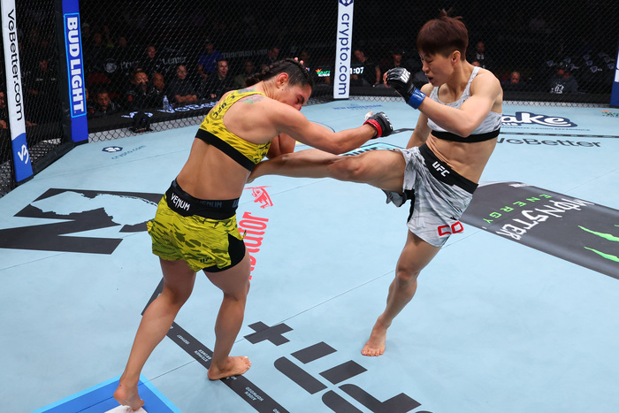 ワン・ツォンは33歳でUFC2勝1敗(1KO・1判定勝ち)。キャリアでは7勝1敗で2KO・2一本勝ちRoad To UFCのワンマッチからUFC契約を果たした。UFCデビュー戦では秒殺KO勝ち。。元キックボクサーで、キック時代に現王者のヴァレンチーナ・シェフチェンコを破っているという実績のため、こちらも鳴り物入りでのUFCデビューとなったが、地元マカオでの2戦目は大幅アンダードッグのガブリエラ・フェルナンデス相手に2Rハイキックでダウンを奪われてチョークで一本負け。2月のオーストラリア大会で再起したものの、キャリア初黒星を喫した影響からか、打撃をヒットさせても倒しに行く姿勢は見られず、判定勝ちしたものの、評価を下げる内容だった。