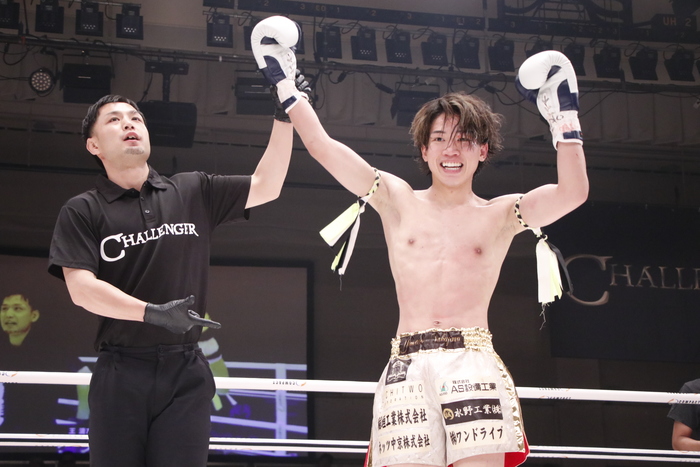3R、王が左ミドル、右ロー、左右フックと攻めるラウンドに。中島は組まれると逆にヒザ蹴りを見舞っていく。ジャブ、右ストレートで王のラフなファイトに応戦し、最後は手数が少なかったが判定3-0で勝利した。