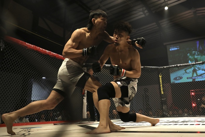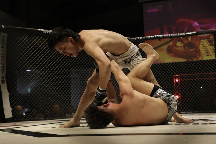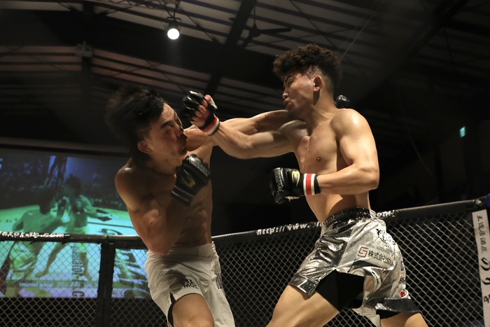 しかし、パクは詰めて組んで上に! ハーフガードの南の蹴り上げにパクは離れてから再び詰めて中腰でパウンド。最後は南が下でゴングを聞いた。判定3-0(29-28×2, 30-27)で、24歳の南がMMA5戦目で戴冠。