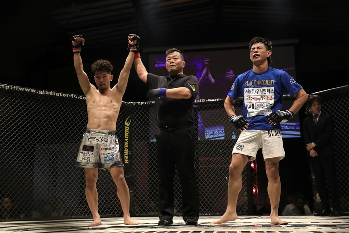 対するパク・ソンジュンはGLADIATOR初参戦ながら、BLACKCOMBATバンタム級2位にランクされる。戦績は7勝3敗1分で5KO勝ちをマークしている。