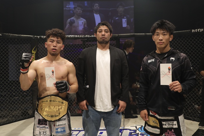 【GLADIATOR】南友之輔がソンジュンに判定勝ちで5勝無敗でバンタム級王者に「通過点。こんなもんじゃない」。今井健斗が久保健太を極めてオトゴンバートルに挑戦へ、バンタム級・ルキヤが宮川日向との殴り合い制す、小森真誉が望月貴史を完封