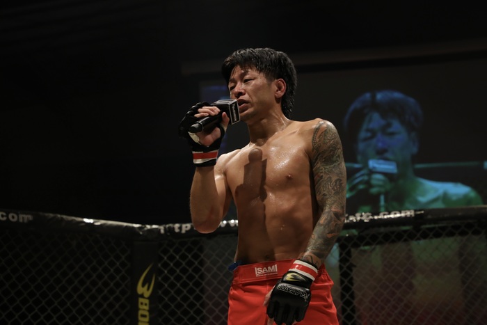 オトコンバートルへの挑戦権を得た今井は、「切磋琢磨して最後の最後、戦うことになってありがとうございました。フライ級の上位陣を倒したんで王者に挑戦できるようにしっかり作ります。あと、ボーナスください」と挨拶。