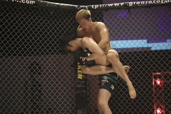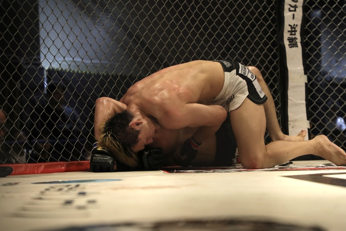 2R、ワンツーから再び右を当てる望月。下がる小森だが四つに組んでテイクダウン。すぐさまバックを奪い、ボディトライアングル。4の字が外れたところで腰をずらして正対してトップも、小森はスイッチ狙いから立ち上がり。そこに左右連打からダブルレッグも切った小森がシングルレッグでテイクダウン。下の望月が草刈をしかけてゴング。