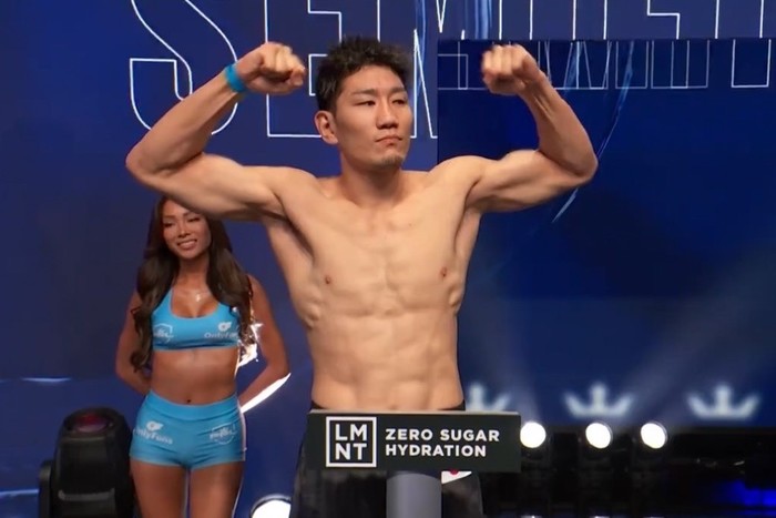 「86kgくらいから落としているんで、170ポンド(77.1kg)からタイトルマッチ以外はプラス1ポンド(約0.45kg)許容で、77.5kgくらいまでOKなので……トータルでは8.5kgくらいですかね。最後の水抜きは82kgぐらいからやります」