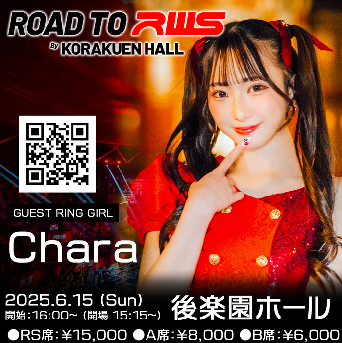 2025年6月15日(日)東京・後楽園ホール『Road to RWS』(U-NEXT配信)のラウンドガールにChara(ちゃら)が新しく参加決定した。