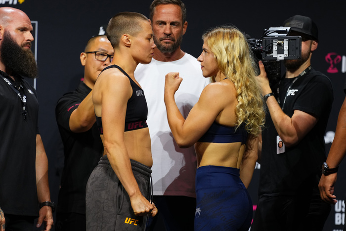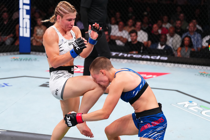 #UFCAtlanta Official Result: Rose Namajunas (30-27, 30-27, 29-28 | @RoseNamajunas) defeats Miranda Maverick via Unanimous Decision.