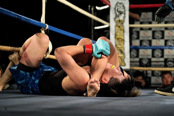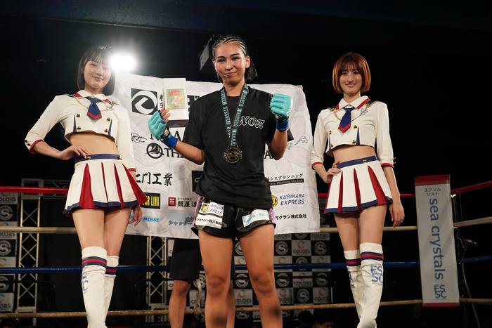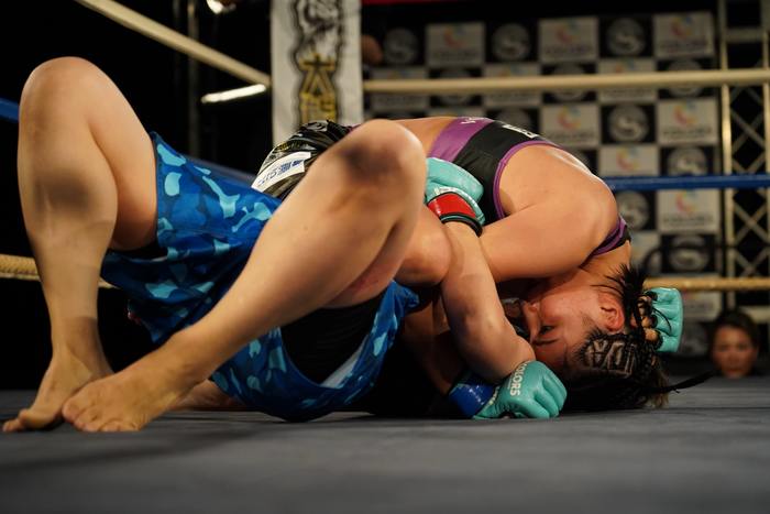 全日本選手権の決勝戦では8月に行われた『COLORS Vol.3』でトライアウトで戦った片山智絵との再戦となったが、下からの腕十字を極めて涙の戴冠。先にデビューを果たしている同門のerikaと共にTHE BLACKBELT JAPANが女子2階級制覇を果たした。